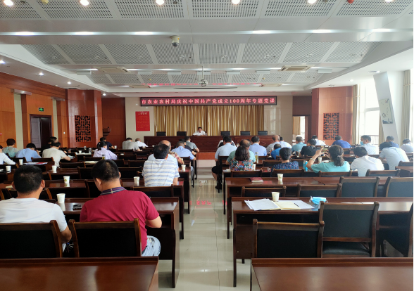 为庆祝中国共产党成立100周年,深入推进党史学习教育进一步走深走实。6月30日,市农业农村局机关全体党员和局属基层党组织书记、支委委员齐聚一堂,佩戴党员徽章、上专题党课、重温入党誓词,开展庆“七一”活动,迎接党的百年华诞。