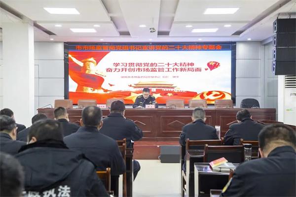 根据市委学习宣传贯彻党的二十大精神有关要求,市市场监管局组织举办学习贯彻党的二十大精神专题培训班。12月9日,市市场监管局党组书记、局长钟文以《学习贯彻党的二十大精神 奋力开创市场监管工作新局面》为题给培训班学员作主题宣讲。市局党组领导班子、机关全体党员干部、局属二级单位负责人共计80余人参会。