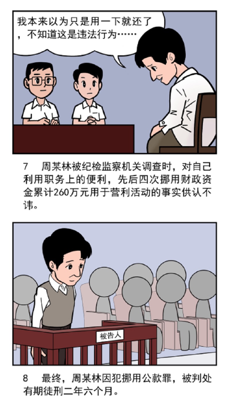 2021年3月2日,周某林犯挪用公款罪,被判处有期徒刑二年六个月。