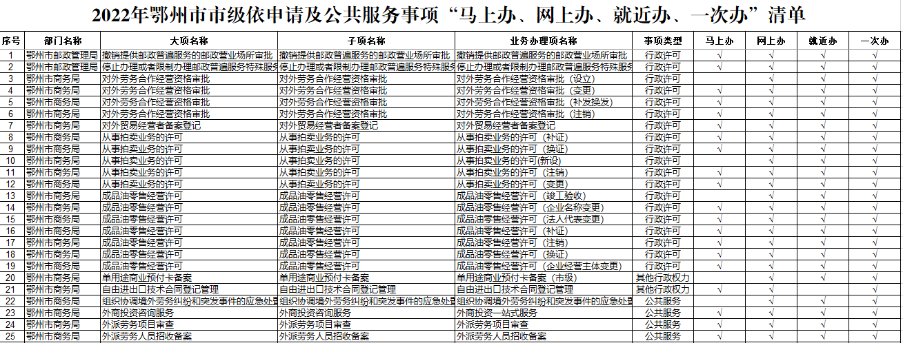 2022年mobilebet123365_365bet注册送奖金_365商城官网市级依申请及公共服务事项“四办”清单