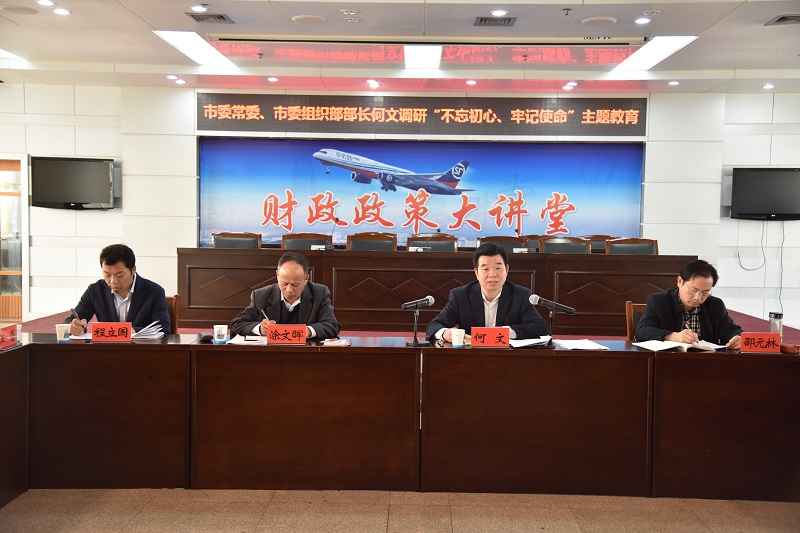 在听取我局主题教育推进情况汇报后,何文同志对市财政局主题教育活动开展情况予以充分肯定。他指出,市财政局主题教育活动理论学习全面,调查研究敢于触及问题,检视问题聚焦担当作为,整改问题勇于动真碰硬,主题教育活动与财政中心工作有机融合,做到了两手抓和两促进。