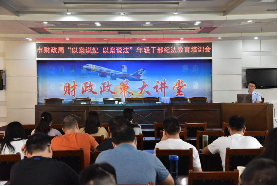 随后,市纪委派驻市财政局纪检组戴旭为市财政局全体青年干部进行“以案说纪 以案说法”纪法教育培训。通过分享中纪委国家监委通报的三项案例,学习湖北省容错纠错机制,提醒广大财政青年干部低调做人、大胆做事。既要心存敬畏、以案为鉴,又要勇于担当、敢作敢为。与会青年一致认为,此次培训会召开及时、案例鲜活、剖析深刻,使大家深受触动和警醒,进一步认清了党风廉政建设的重要性以及反腐败斗争的形势,筑牢秉公用权、崇廉拒腐的思想防线。