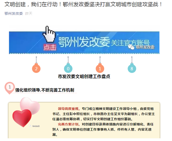二是加强宣传报道。将发展动态、重点项目建设情况等通过政务信息、市政府门户网站、mobilebet123365_365bet注册送奖金_365商城官网日报等向全市公开,同时向荆楚网、湖北日报等省级媒体发布发展改革信息,截至目前已刊登涉及扶贫、水利、农业、重点改革等领域信息稿件15余篇。全面升级改造政务微信公众号,全年通过政务微信编撰宣传信息48篇,年阅读量超10000人次。