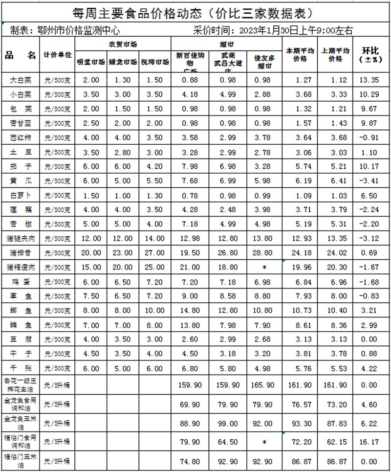 2023年1月30日价比三家