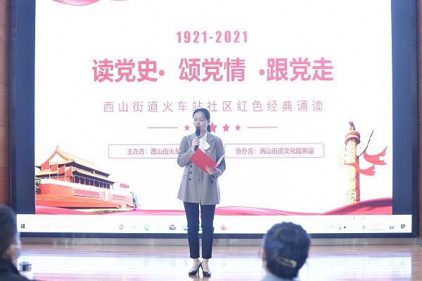 为推动党史学习教育扎实开展,火车站社区组织举办了“读党史、颂党情、跟党走”红色经典诵读大赛,我委作为该社区牵头共建单位,组织选手积极参与比赛。