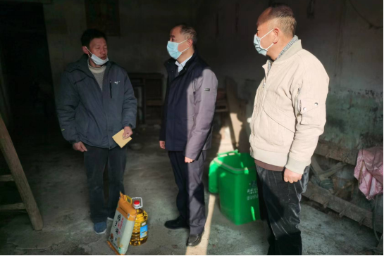 余盖波一到伯岩村就来到脱贫户刘厚文家里,送上慰问金、米、油及新年祝福;询问他生产、生活、收入等情况,叮嘱他保重身体,乐观生活。