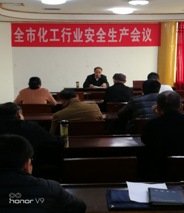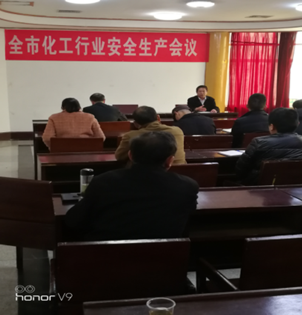 会上,市经信委副主任余盖波传达了曹广晶副省长在全省安全生产紧急视频会议上的讲话精神,要求各地各企业要深刻吸取张家口市“11.28”爆炸事故教训,狠抓各项安全生产责任落实,确保全市工信领域、特别是化工行业生产安全。