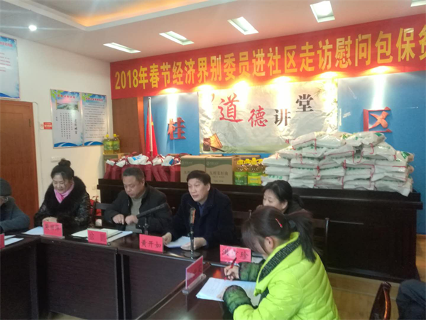 在桂花园社区党员活动中心,市政协黄副主席、学习文史委员会副主任樊丽萍和委员工作委员会副主任周浩然、经济界别16名委员、西山街办和社区相关负责任人、包保的16名社区贫困户,欢取一堂,走“亲戚”,续亲情,氛围融洽。社区廖世英主任首先很感激地报告了2017年来经济界别委员进社区办实事情况。经济界别牵头人徐鹏委员也总结了2017年进社区取得的实效,并部署了2018年进社区新任务和新举措。