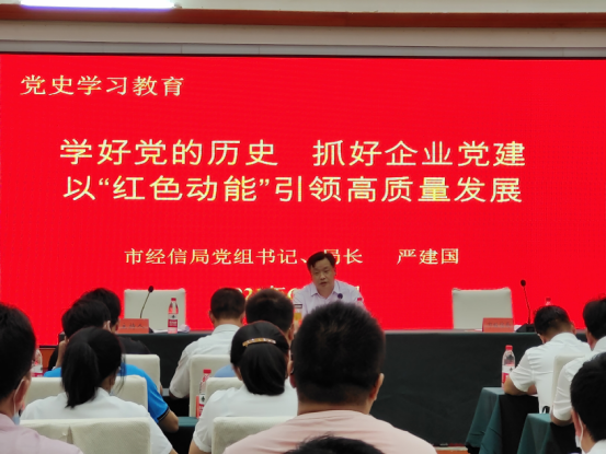市经信局党组书记、局长严建国以《学好党的历史 抓好企业党建 以“红色动能”引领高质量发展》为题讲专题党课,共同回顾党的历史,共同谋划企业党建工作。要求企业党组织要充分发挥政治核心作用和经济建设的促进作用,以实之又实的作风提升企业效益稳增长,以好之又好的品格谋划企业发展促创新,以强之又强的担当组织企业管理抓转型,以严之又严的纪律规范企业经营优环境。