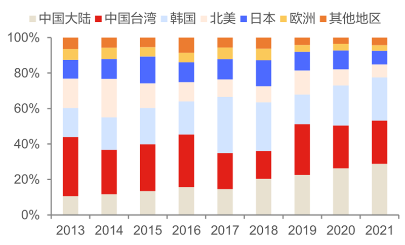 ▲全球半导体设备市场分布情况