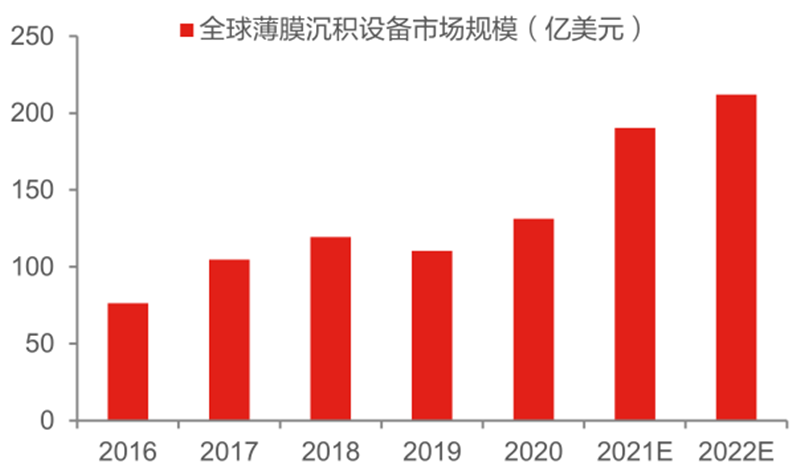 ▲全球薄膜沉积设备市场规模及预测