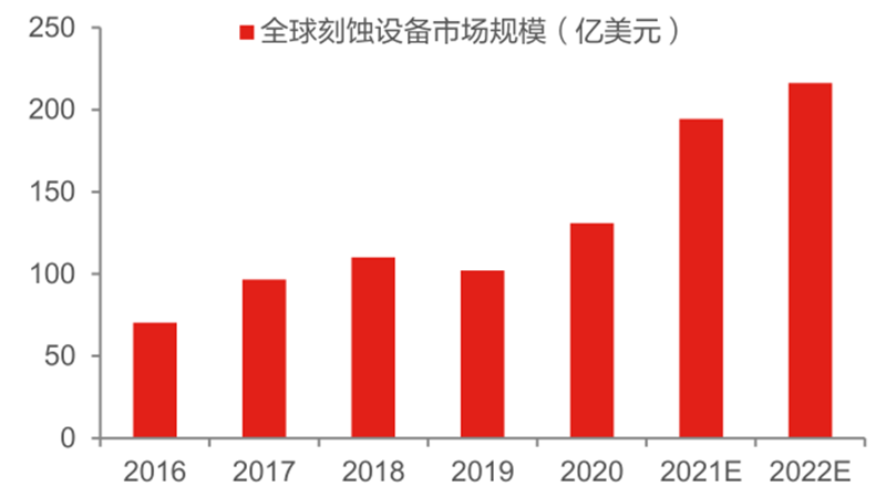 ▲全球刻蚀设备市场规模及预测