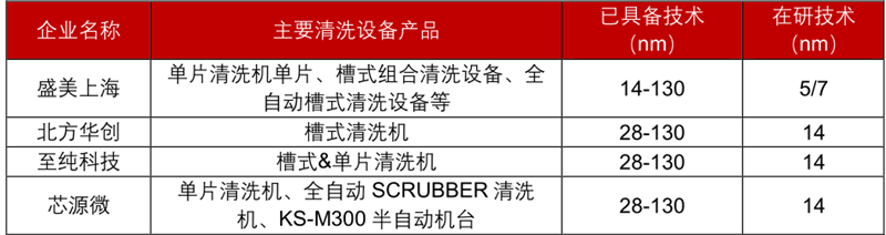 ▲中国半导体清洗设备企业产品及相关技术情况