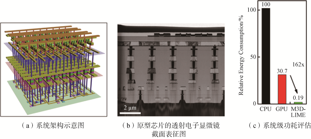 图3 碳、硅和忆阻器单片三维异质集成系统