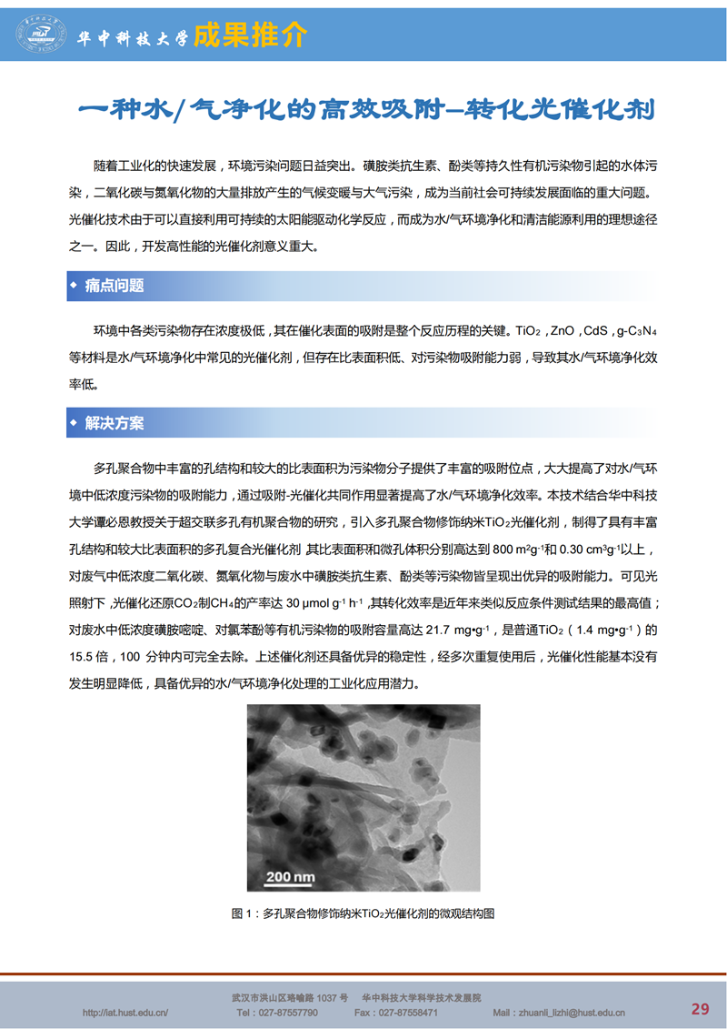 【能源环保】一种水气净化的高效吸附-转化光催化剂