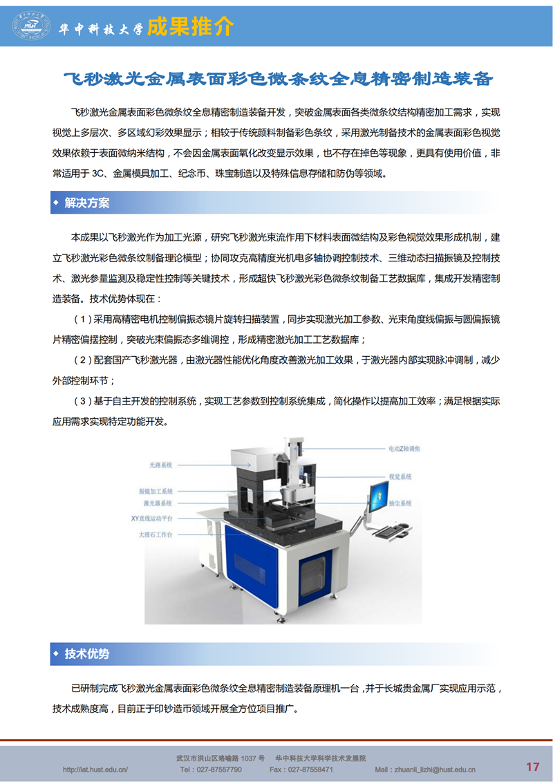 【智能制造】飞秒激光金属表面彩色微条纹全息精密制造装备