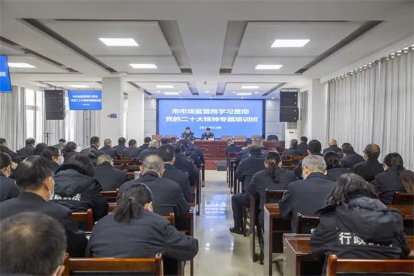根据市委学习宣传贯彻党的二十大精神有关要求,市市场监管局组织举办学习贯彻党的二十大精神专题培训班。12月9日,市市场监管局党组书记、局长钟文以《学习贯彻党的二十大精神 奋力开创市场监管工作新局面》为题给培训班学员作主题宣讲。市局党组领导班子、机关全体党员干部、局属二级单位负责人共计80余人参会。