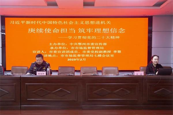 2月9日,mobilebet123365_365bet注册送奖金_365商城官网市场监管局举办学习宣传贯彻党的二十大精神宣讲活动,市委宣讲团成员、市委党校副教授季慧作专题宣讲。报告会由市局党组成员、副局长张向阳主持,市局在家党组成员、机关全体干部、局属二级单位主要负责人共计60余人参会。