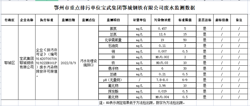 mobilebet123365_365bet注册送奖金_365商城官网重点排污单位宝武集团鄂城钢铁有限公司废水监测数据