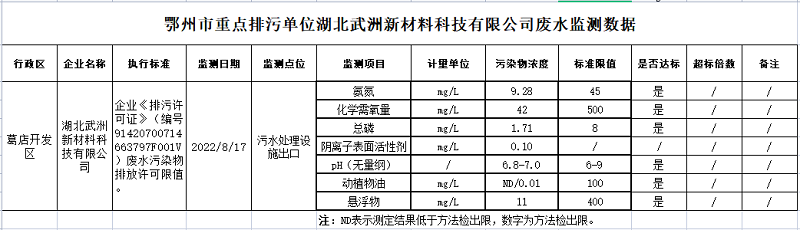 mobilebet123365_365bet注册送奖金_365商城官网重点排污单位湖北武洲新材料科技有限公司废水监测数据