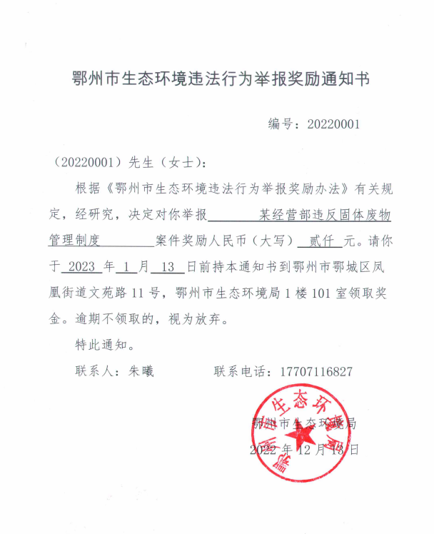 mobilebet123365_365bet注册送奖金_365商城官网生态环境违法行为举报奖励通知书 20220001