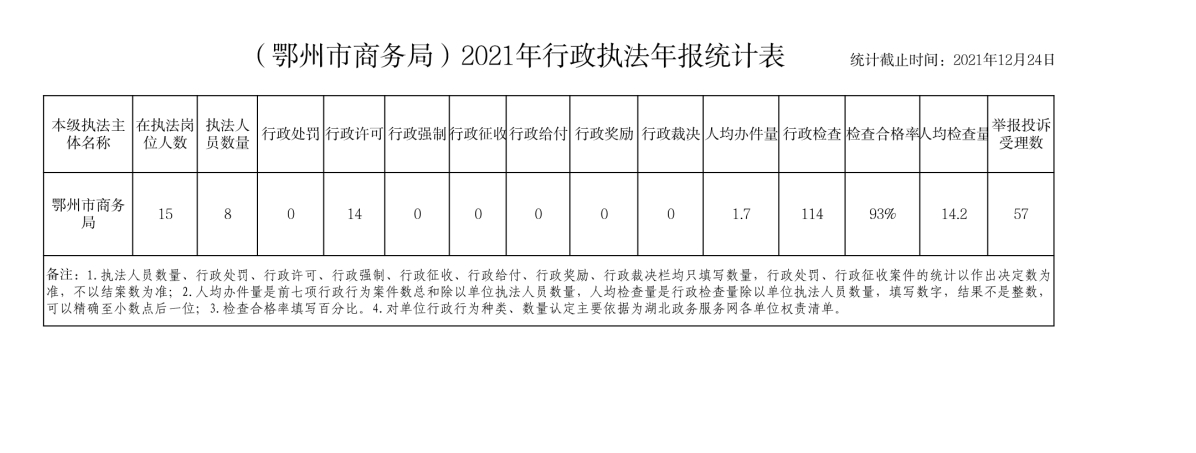 市商务局2021年度行政执法统计年报