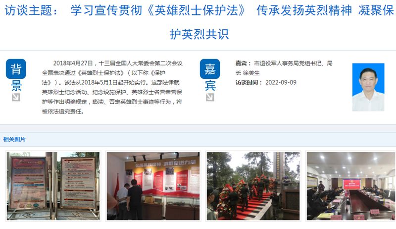 主持人:退役军人事务部门在宣传《英雄烈士法保护法》方面做了哪些工作?
