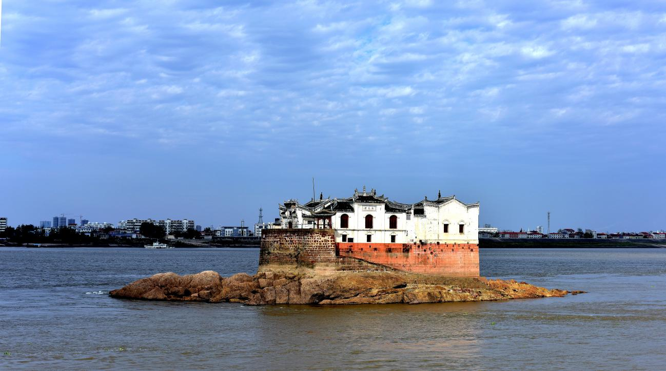 鄂州城区不远的江心洲上,一座古寺白壁青瓦,蟠龙翘首西望,“万里长江第一阁”观音阁即雄踞龙首之上,如那海上仙山般的“小蓬莱”。