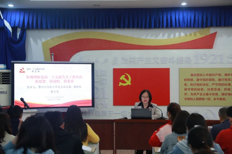 市实验小学开展“学习党的二十大 砥砺奋进新征程”支部主题党日活动。学校支委、副校长熊小芳为全体党员讲解二十大报告中关于教育的重要论述,号召全体党员要深入贯彻落实二十大精神,牢记为党育人、为国育才的初心使命。