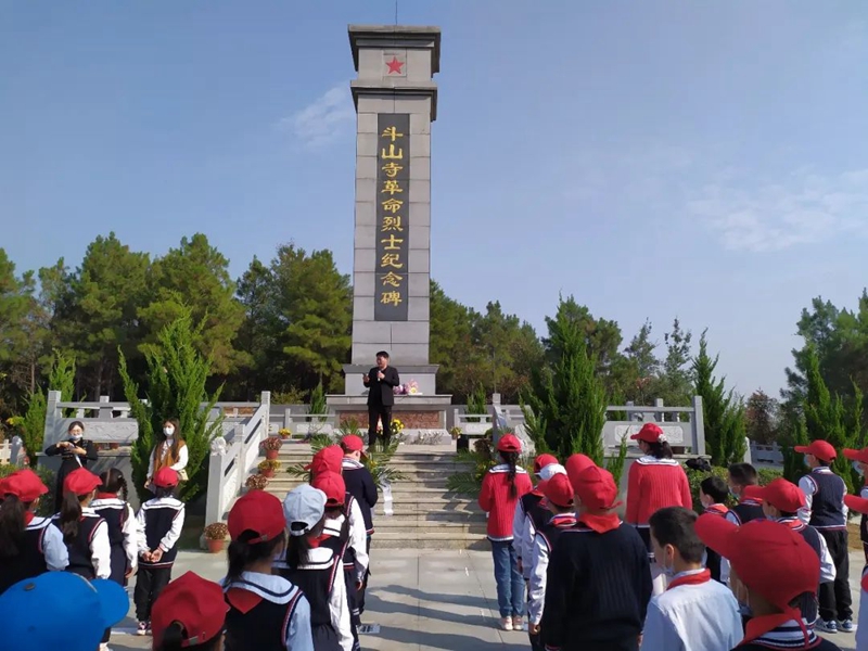 10月23日,新民街小学组织50余名校园小记者来到梁子湖区斗山寺革命烈士陵园。向烈士敬献花篮,集体宣誓并默哀,表达对烈士的缅怀与崇敬之情。“我们祭扫烈士陵园,就是要继承先烈的遗志,从小树立为民族振兴、国家富强、为中华之崛起而读书的远大理想,努力成长为担当民族复兴大任的时代新人!”小记者代表道出同学们的心声。