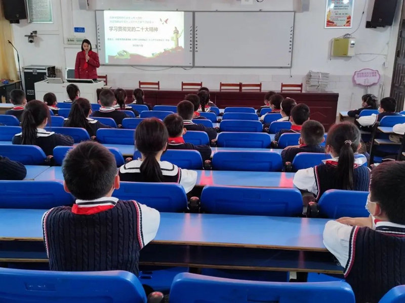 为推动党的二十大精神在全体学生中入脑入心,增强同学们担当民族复兴大任的责任感,11月14日下午,华容镇实验小学组织党员教师向优秀少先队员代表宣讲党的二十大精神。