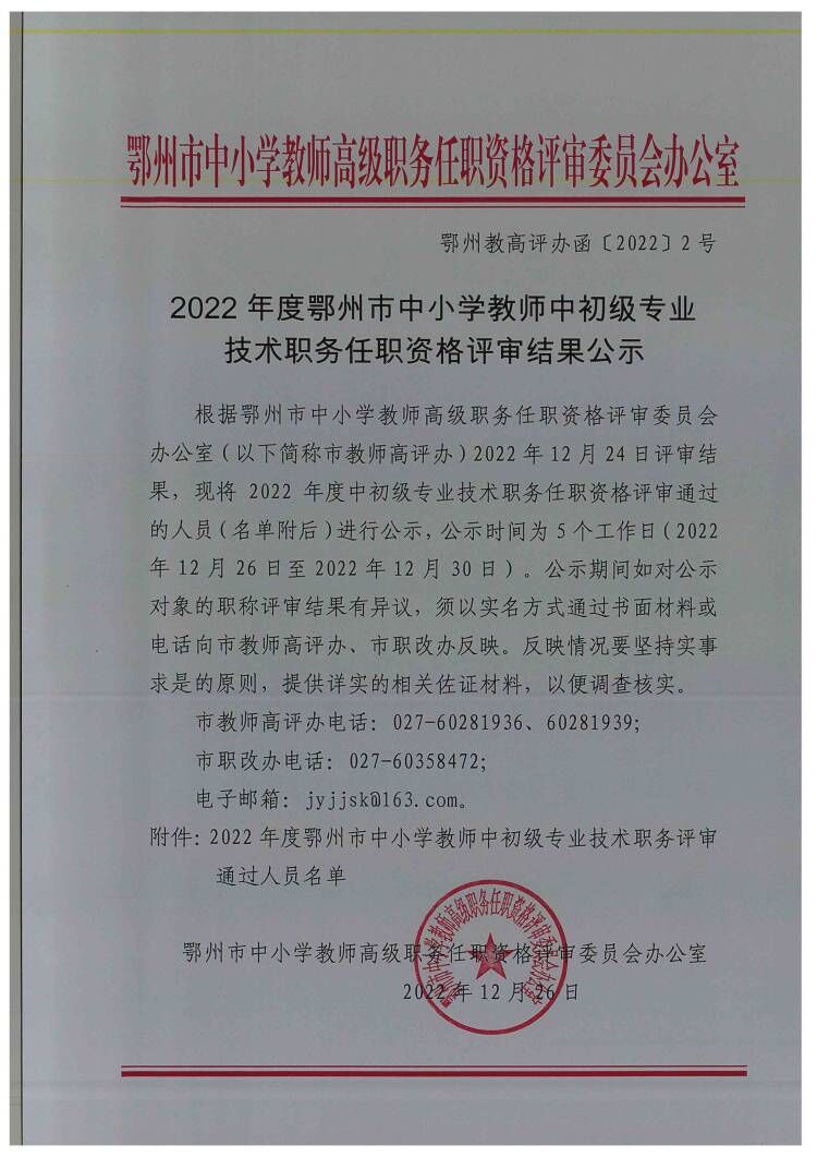 2022年度mobilebet123365_365bet注册送奖金_365商城官网中小学教师中初级专业技术职务任职资格评审结果公示