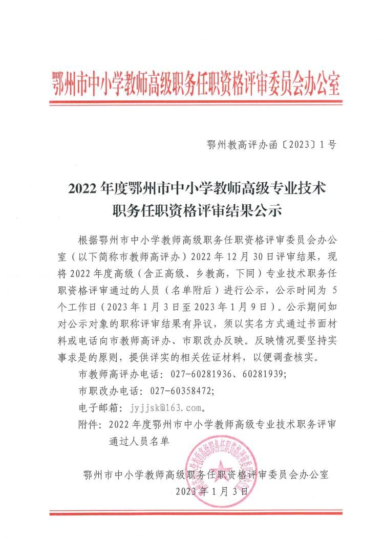 2022年度mobilebet123365_365bet注册送奖金_365商城官网中小学教师高级专业技术职务任职资格评审结果公示