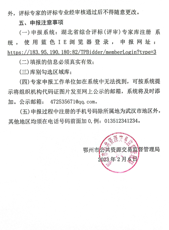 关于征集2023年度湖北省综合专家库区域库鄂州区域库评标专家的公告